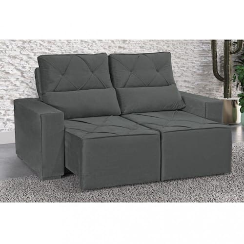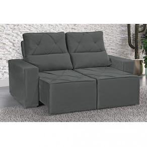Características: Espuma: R 23 Molas Espirais Percintas: Elásticas Madeira: Eucalipto de Reflorestamento Tratado Encosto: 50 fibra / 50 flocos Reclinável: Catraca com 5 posições Pés: Cantoneira de Plástico Tecido: Veludo Altura do assento: 0.44 cm