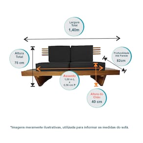 Medidas como sofá: Largura 150 cm - profundidade do assento 55 cm - profundidade total ocupada pelo sofá 75 cm - Altura do assento em relação ao chão 39 cm.