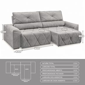 O Houston não é apenas um móvel, é um convite pra transformar a rotina em puro conforto. Seu visual imponente traz presença, enquanto o toque macio e o apoio firme acolhem corpo e mente. O assento retrátil amplia o espaço, e o encosto reclinável em 5 posições ajusta-se ao seu relax. Destaques: encosto reclinável, almofadas fixas, costura matelassê, assento retrátil até 1,60m, mola bonel e espuma D26 com camada soft, rodízios em silicone, estrutura em madeira maciça e suporte até 150kg por módulo. Produto Montado: Sim Acompanha Almofadas extras: Não Almofada do assento: Fixa Almofada do encosto: Removível Altura do assento até o chão: 45.0000 Altura do Encosto: 45 cm Altura dos Pés: 3 cm Altura Máxima dos Pés: 3.0000 Ambiente Principal: Sala de Estar codigo_ean: 7900288206053 Complexidade da Montagem: Baixa: pode ser montado por uma pessoa sozinha Cor: Nevoa Cor do Produto: Nevoa Estilo de Braço: Braços Pillow Top Informações Complementares: Almofadas acompanham a cor do sofá. Itens Inclusos: 1 Sofá e Kit Ferragens Linha ou Coleção: Houston Manual de Especificação Técnica: https://product-hub-prd.madeiramadeira.com.br/809921801/documents/08e4e126-2e3c-4d9b-87f5-a359555d25c72969263643817488832525607.pdf Manual de Montagem e Instalação: https://product-hub-prd.madeiramadeira.com.br/809921801/documents/95c83484-1c1b-4e30-bf19-00db341a6858afbcb96b0bd476a21747939242.pdf Marca: Apolo Estofados Material dos Pés: Plástico Montagem Flex: Encaixe de encostos, pés e rodízios Necessita Montagem: Sim Origem do Produto: Nacional Peso: 80 kg Pet Friendly: Não Possui Percintas Elásticas: Sim Possui Pés: 04 Possui Rodízio: Sim Profundidade Quando Estendido: 160 cm Profundidade quando extendido: 160.0000 Recomendações de Uso, Manutenção e Limpeza: Recomenda-se aspirar regularmente o sofá para manter o tecido livre de poeira. Em caso de manchas, utilize um pano limpo e umedecido, evitando esfregar com força. Sempre teste produtos de limpeza em uma área discreta antes do uso. Tecidos como microfibra, poliéster e modelos com proteção antimanchas são mais práticos para o dia a dia. Sistema de Montagem: O sofá é enviado com um kit contendo 4 pés, 4 rodízios e os parafusos correspondentes, acondicionados em saco plástico. Para montagem, fixe os pés nos quatro cantos da base, garantindo que estejam apoiados sobre a madeira de reforço. Em seguida, parafuse Suporta Até (kg): 150 kg Tecido Predominante: Boucle Tipo de Encosto: Regulável Tipo de Mola: Molas Bonnel Tipo de Sofá: Sofá Comum