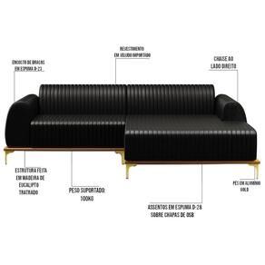Material: Madeira Eucalipto | Gênero: Unisex | Largura: 230 cm | Profundidade: 85 cm | ProductWidth: 230 | ProductLength: 85 | ProductWeight: 78 | SizeDescription: 76 x 230 x 85 cm | ProductWarranty: 90 dias após o do produto | ProductInstructions: Produto para uso em ambiente interno, nao devendo ficar exposto ao sol, calor e umidade excessivos. | ProductContents: 1 Sofá | AssemblyRequired: Sim, sugerimos a contratação do nosso de montagem (para os CEPs em que o está dispon | OriginCountry: | OriginState: PR | Marca: Domi | Tipo de Garantia: Fabricante | Peso Suportado: 120 kg | Altura: 76 cm | ColorFamily: Preto | ProductHeight: 76 | Manual: Sim | MaterialFamily: Madeira Eucalipto | Cor: Preto | SupplierSimpleName: Sofá 230cm 4 Lugares com Chaise Direito Pés Gold Molino B-159 Corano Preto - Domi | Origem: | ColorSimple: Preto | Color: Preto | Peso: 78 kg | Model: Molino | Requere montagem: Sim | ColorSupplier: Preto