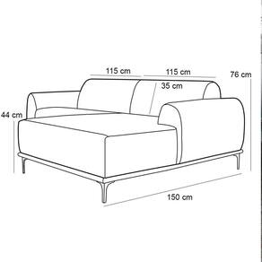 Largura do assento: sofá: 115 cm/ chaise: 115 cm.