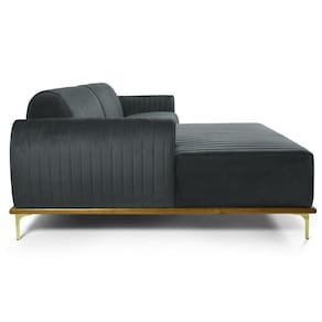 Sofá 245cm 4 Lugares Com Chaise Esquerdo Pés Gold Molino B-317 Veludo Cinza - Domi