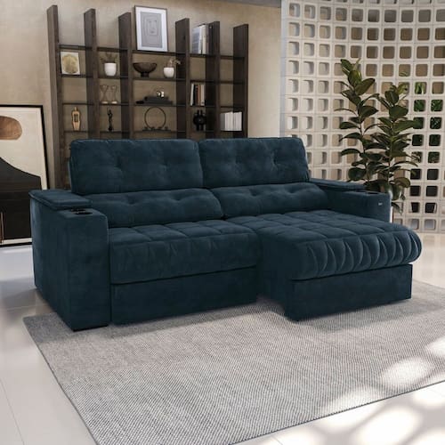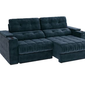 Símbolo de requinte e conforto, aposte no Sofá Premier 2,6m da Kappesberg. Produzido em madeira de eucalipto e MDF, ele conta com assentos retráteis e encostos articuláveis em seis posições, permitindo ajustar conforme a sua preferência. Com molas bonnel nos assentos, espumas certificadas e enchimento com fibras e flocos, ele proporciona o máximo de conforto. E medindo 1,14m de altura, 2,61m de largura e 1,32m de profundidade, suportando até 120kg por assento, essa será a escolha ideal para você. Revestido com tecido Veludo Azul, com um toque suave e gostoso, os destaques são seu assento com detalhe curvo, suas costuras e puxes, e suas almofadas de braço retráteis, contando com descanso de copos, tornando seus momentos especiais. Cada detalhe pensado para transformar seus momentos.