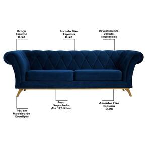 Peso: 50 kg | Largura: 260 cm | Material: Madeira Eucalipto | Gênero: Unisex | Manual: Sim | Origem: | Requere montagem: Sim | SupplierSimpleName: Sofá 260cm 4 Lugares Base Madeira Império C-304 Veludo Azul Marinho - Domi | Model: Império | Color: Azul Marinho | ColorFamily: Azul Marinho | ColorSimple: Azul Marinho | ColorSupplier: Azul Marinho | MaterialFamily: Madeira Eucalipto | ProductHeight: 77 | ProductWidth: 260 | ProductLength: 87 | ProductWeight: 50 | SizeDescription: 77 x 260 x 87 cm | ProductWarranty: 90 dias após o do produto | ProductInstructions: Produto para uso em ambiente interno, nao devendo ficar exposto ao sol, calor e umidade excessivos. | ProductContents: 1 Sofá | AssemblyRequired: Sim, sugerimos a contratação do nosso de montagem (para os CEPs em que o está dispon | OriginCountry: | OriginState: PR | Marca: Domi | Tipo de Garantia: Fabricante | Peso Suportado: 120 Kg sem impacto. | Profundidade: 87 cm | Altura: 77 cm | Cor: Azul Marinho