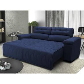 Sofá 2,72m Retrátil E Reclinável Com Molas Cama Inbox Top Tecido Suede Velusoft Azul Um modelo exclusivo e requintado, o sofá Cama inBox Top é um modelo maravilhoso. Com design único e inovador, todo o seu assento é feito com bordado pantográfico, dando um toque mais elegante e moderno a este modelo. Feito com espuma D33 e envolvida com manta grossa de fibra siliconada, seu conforto e qualidade são garantidos. Sinta-se abraçado(a) pelo conforto do Maravilhoso Sofá Cama inBox Top! Características: -Encosto Reclinável com 5 posições, almofadas fixas compostas de 80% fibra siliconada e 20% flocos de espuma e percintas elasticas para maior conforto. -Assentos: Retráteis com espuma D33 envolvidas em manta grossa de fibra SILICONADA compactada, Molas espiral, percintas Pneumáticas com feltro para proteger do atrito com as molas. -Braços almofadados com 80% fibra e 20% flocos de espuma. -Fixação: Grampos galvanizados -Estrutura de Madeira maciça 100% eucalipto de reflorestamento, produto ecologicamente correto -Tecido suede com toque aveludado