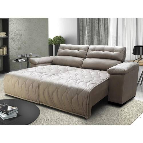 Sofá 2,72m Retrátil E Reclinável Com Molas Cama Inbox Top Tecido Suede Velusoft Bege Um modelo exclusivo e requintado, o sofá Cama inBox Top é um modelo maravilhoso. Com design único e inovador, todo o seu assento é feito com bordado pantográfico, dando um toque mais elegante e moderno a este modelo. Feito com espuma D33 e envolvida com manta grossa de fibra siliconada, seu conforto e qualidade são garantidos. Sinta-se abraçado(a) pelo conforto do Maravilhoso Sofá Cama inBox Top! Características: -Encosto Reclinável com 5 posições, almofadas fixas compostas de 80% fibra siliconada e 20% flocos de espuma e percintas elasticas para maior conforto. -Assentos: Retráteis com espuma D33 envolvidas em manta grossa de fibra SILICONADA compactada, Molas espiral, percintas Pneumáticas com feltro para proteger do atrito com as molas. -Braços almofadados com 80% fibra e 20% flocos de espuma. -Fixação: Grampos galvanizados -Estrutura de Madeira maciça 100% eucalipto de reflorestamento, produto ecologicamente correto -Tecido suede com toque aveludado