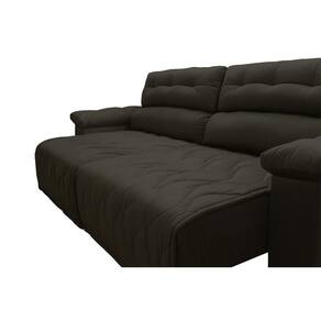 Sofá 2,82m Retrátil E Reclinável Com Molas Cama Inbox Top Tecido Suede Velusoft Café Um modelo exclusivo e requintado, o sofá Cama inBox Top é um modelo maravilhoso. Com design único e inovador, todo o seu assento é feito com bordado pantográfico, dando um toque mais elegante e moderno a este modelo. Feito com espuma D33 e envolvida com manta grossa de fibra siliconada, seu conforto e qualidade são garantidos. Sinta-se abraçado(a) pelo conforto do Maravilhoso Sofá Cama inBox Top! Características: -Encosto Reclinável com 5 posições, almofadas fixas compostas de 80% fibra siliconada e 20% flocos de espuma e percintas elasticas para maior conforto. -Assentos: Retráteis com espuma D33 envolvidas em manta grossa de fibra SILICONADA compactada, Molas espiral, percintas Pneumáticas com feltro para proteger do atrito com as molas. -Braços almofadados com 80% fibra e 20% flocos de espuma. -Fixação: Grampos galvanizados -Estrutura de Madeira maciça 100% eucalipto de reflorestamento, produto ecologicamente correto -Tecido suede com toque aveludado