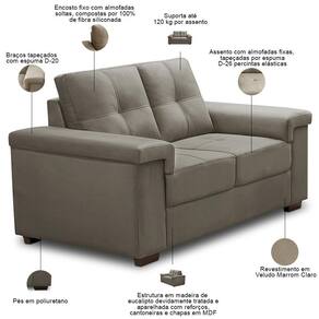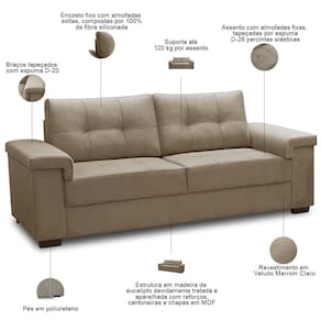 ColorFamily: Marrom Claro | ProductWeight: 100 kg | ProductLength: 90 cm | ColorSimple: Marrom Claro | Formato do sofá: Linear | Orientação do Sofá: Frontal | Requer montagem: Não, apenas o encaixe dos pés | Desenho do tecido: Liso | MaterialFamily: Madeira de Eucalipto | OriginCountry: Brasil | Material do estofamento: Veludo | Peso máximo suportado: 360 kg | Estilo: Moderno | Tipo de produto: Sofá 3 e 2 Lugares | SizeDescription: Altura: 90 cm x Largura: 208 cm x Profundidade: 90 cm | Unidades por kit: 1 | Fabricante: Lyam Decor | Densidade da espuma do assento: D-26 | ProductInstructions: Produto para uso em ambiente interno, nao devendo ficar exposto ao sol, calor e umidade excessivos. | Mecanismo de abertura do produto: na | Peso: 100 Kg | Largura: 208 cm | ProductHeight: 90 cm | Cor: Marrom Claro | Material de enchimento do encosto: Fibras Siliconadas | Quantidade de Caixas de embalagem: 2 | ProductWarranty: 90 dias após o recebimento do produto | ColorSupplier: Marrom Claro | Linha: Sala de Estar, Living | Material: Madeira de Eucalipto | ProductContents: 02 Sofás | Color: Marrom Claro | ProductWidth: 208 cm | Profundidade: 90 cm | Altura: 90 cm | OriginState: PR | SupplierSimpleName: Sofá 3 e 2 Lugares Para Sala de Estar Living Allon F04 Veludo Marrom Claro - Lyam Decor | Model: Allon