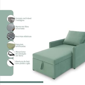 Sofá 3 em 1 Chaise, Cama e Baú Neve Estofama - Verde Claro