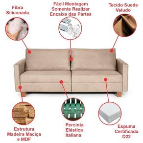 Sofá 3 Lugares 1,80m Fixo Veludo Plaza Bege - Straub Web