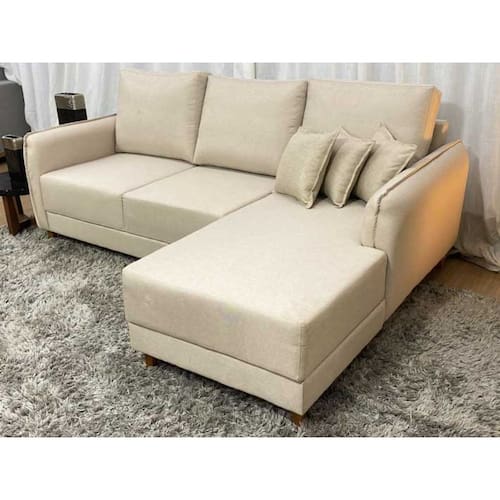 Sofá 3 Lugares 2,00 m Linho Bege Chaise Yvi
