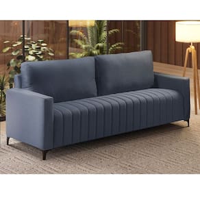 Caracteristicas: 3 Lugares Assento com espuma de poliuretano flexivel D-24,5 Braco com espuma de poliuretano flexivel D-19 Encosto com lmofada Solta em fibra siliconada e flocos de espuma envolvida em manta siliconada Estrutura em Madeira de Eucalipto de reflorestamento e/ou Compensado e/ou MDF Possui pes de ferro Revestimento em Tecido Linho Sistema flexivel com Molas bonnel, cintas elasticas de 50mm de largura com 25 fios triplos de borracha recobertos Suporta 110kg por assento