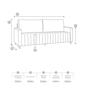 Dimensoes: Altura: 90 cm Largura: 200 cm Profundidade: 90 cm Peso: 38,75 kg