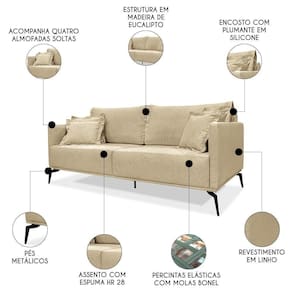 O Sofá 3 Lugares 200cm Pés de Metal Vecchia S06 Linho Dourado, da Mpozenato é uma escolha excelente para quem procura conforto, qualidade e design contemporâneo.