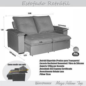 O Sofá 3 Lugares 2,00m Retrátil e Reclinável Venus oferece espaço amplo para até três pessoas relaxarem com estilo. Construído com materiais de qualidade superior, este sofá apresenta um estofamento de 15cm de pillow, combinando o suporte firme da espuma D33 e das molas ensacadas.