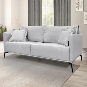 A Sofá Living tem os pés de aço e acabamento elegante na cor preta, ele oferece não apenas estabilidade, mas também um toque de sofisticação ao ambiente assim como o seu revestimento em linho. O assento, feito com espuma HR28 e plumante de silicone, promete ser o refúgio perfeito após um longo dia, enquanto as quatro almofadas decorativas complementam o visual com um charme adicional. A durabilidade é assegurada pela estrutura de madeira maciça de eucalipto, e o encosto em almofada solta com fibra de silicone se adapta perfeitamente ao corpo, proporcionando uma experiência de relaxamento inigualável. Este Sofá 3 Lugares não é apenas um móvel, mas um investimento em bem-estar e estilo para a sua Sala de Estar.