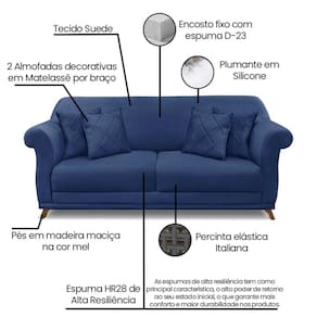 O sofá Abruzzo tem um toque retro clássico, sua principal característica a versatilidade. Ele se encaixa em qualquer estilo de decoração: na sua casa ou no seu escritório, esse modelo garante beleza e conforto. Feito em madeira de reflorestamento e com suas espumas de alta resiliência tem como principal característica, o alto poder de retorno ao seu estado inicial, o que garante mais conforto e maior durabilidade nos produtos Acompanha Almofadas extras: 04 Almofada do assento: Fixa Almofada do encosto: Fixa Altura do assento até o chão: 45 Altura do Encosto: 45 Altura dos Pés: 12 Ambiente Principal: Sala de Estar Complexidade da Montagem: Baixa: pode ser montado por uma pessoa sozinha Cor: Azul Marinho Cor do Produto: Azul Marinho Densidade do Assento: D-28 Densidade do Encosto: D-26 Enchimento do Assento: Espuma Enchimento do Encosto: Espuma Estilo de Braço: Braços Redondos Firmeza do Assento: Macio Informações Complementares: O sofá Arras tem um toque retro clássico, sua principal característica a versatilidade. Ele se encaixa em qualquer estilo de decoração: na sua casa ou no seu escritório, esse modelo garante beleza e conforto. Feito em madeira de reflorestamento e com sua Itens Inclusos: 1 Sofá Linha ou Coleção: Arras Manual de Montagem e Instalação: https://cdn2.madeiramadeira.com.br/atributo/spezzia-decor/1254082-manual-arras-sofa.pdf Material dos Pés: Madeira Maciça Necessita Montagem: Sim Origem do Produto: Nacional Peso: 82.3 Pet Friendly: Não Possui Percintas Elásticas: Sim Possui Pés: 04 Possui Rodízio: Não Recomendações de Uso, Manutenção e Limpeza: Limpeza: Utilize pano levemente úmido Revestimento do Braço: estofado Sistema de Montagem: É necessário apenas fixar os pés. Suporta Até (kg): 150 Tecido Predominante: Linho Tipo de Encosto: Fixo Tipo de Mola: Molas Bonnel Ean: 7908308785168