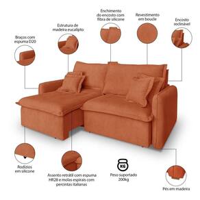 Assento: Retrátil, percintas elásticas italianas, molas bonel, espuma HR28 + plumante em silicone