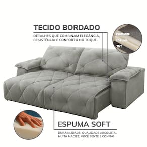 A espuma 26 soft garante uma sensação de maciez, enquanto o encosto oferece suporte e alívio às tensões, tornando cada descanso mais prazeroso. O design moderno combina funcionalidade e estilo, realçando a decoração e entregando praticidade sem abrir mão do charme. Seja para receber visitas, curtir um filme ou simplesmente relaxar após um dia intenso, o sofá Texas oferece o nível máximo de acomodação e conforto, tornando a sala de estar o cenário perfeito para diversos momentos.