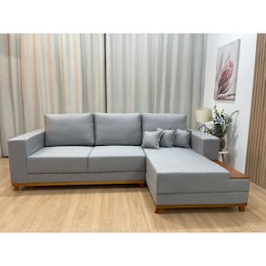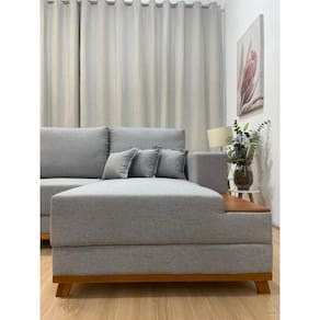 Sofá 3 Lugares 2,50 m Linho Cinza Chaise Aline Plus Nosso Sofá 3 lugares Bege modelo Aline é um produto moderno, com design elegante que deixa sua sala ainda mais linda e aconchegante. Bem como seu Chaise com amplo espaço, ideal para esticar as pernas e descansar. Ainda mais com o revestimento em Linho com textura macia, considerada confortável e sofisticada para o revestimento de estofados. Além do detalhe em madeira ideal para repousar copos, controle remotos e outros objetos. Então, compre agora seu sofá Chaise Aline.