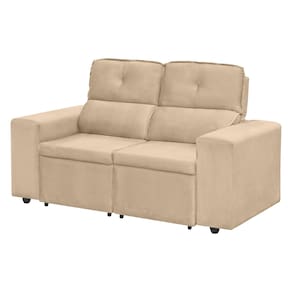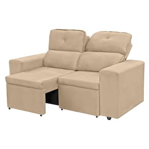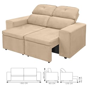 Sofá 3 Lugares Bartira Vegas Revestido em Veludo Espuma D24 Assento Retrátil Encosto Reclinável D24 - 160cm de Largura - Bege