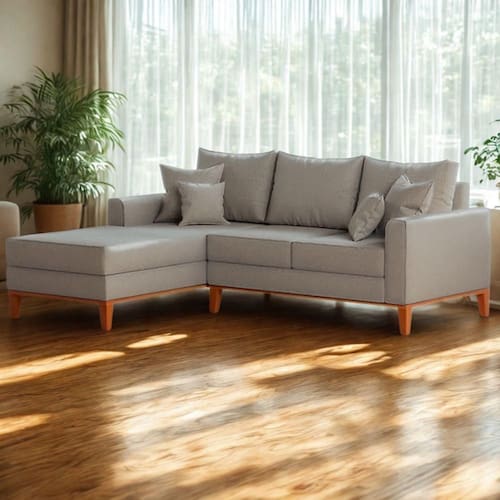Montagem: O produto vai montado, apenas rosquear os pés e encaixar a Chaise no Sofá na peça lateral.