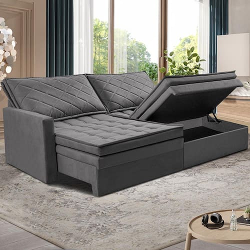 Seu assento retrátil com extensão e encosto reclinável garantem o máximo de conforto, enquanto os baús individuais sob cada assento proporcionam praticidade para armazenar mantas, almofadas e objetos diversos. Ideal para ambientes compactos, o modelo elimina a caixa tradicional, permitindo que o encosto funcione como extensão do assento.