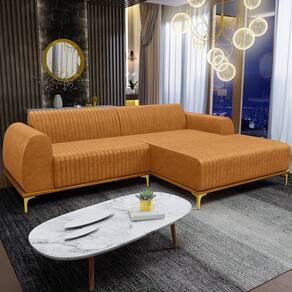 O Sofá com Chaise Direito Para Sala de Estar Molino 230cm D02 da Lyam Decor, exala formosura e elegância! Excelente opção para dispor em sua sala de estar ou espera, recepção, hall de entrada, dormitório, qualquer área de circulação ou antessala entre um cômodo e outro, as possibilidades de combinação são infinitas. Seu protagonismo é notório, sem sombra de dúvidas é perfeita para qualquer ambientação que desejar colocá-la. Com sua resistente estrutura, na cor castanho com detalhes em dourado, deixarão sua decoração ainda mais sofisticada. Oferecendo máximo conforto sem deixar de transmitir todo a magnitude que seu lar merece!