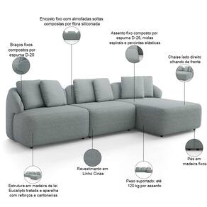 Sofá modulado contendo: 01 assento com braço, 01 assento sem braço e 01 chaise.