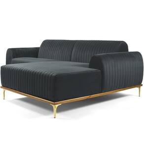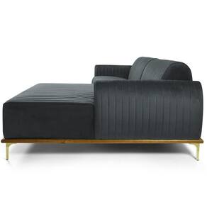 Sofá 3 Lugares Com Chaise Direito Para Sala Molino 230 Cm D02 Veludo Cinza C-317 -lyam Decor O Sofá 3 Lugares com Chaise Direito Para Sala Molino 230 cm D02 Veludo Cinza C-317 -Lyam Decor exala formosura e elegância! Excelente opção para dispor em sua sala de estar ou espera, recepção, hall de entrada, dormitório, qualquer área de circulação ou antessala entre um cômodo e outro, as possibilidades de combinação são infinitas. Seu protagonismo é notório, sem sombra de dúvidas é perfeita para qualquer ambientação que desejar colocá-la. Com sua resistente estrutura, na cor castanho com detalhes em dourado, o encosto e assento revestidos em veludo, deixarão sua decoração ainda mais sofisticada. Oferecendo máximo conforto sem deixar de transmitir todo a magnitude que seu lar merece! Dimensões do produto (L x A x P) 230 x 76 x 150 cm Medidas Internas: Altura do assento: 44 cm Largura do assento: 115 cm Profundidade do assento: 54 cm Profundidade externa (lado sem Chaise): 85 cm Altura livre do encosto: 35 cm Profundidade livre de assento (Chaise): 119 cm Largura Chaise: 115 cm Largura do braço: 25 cm Altura interna do braço: 19 cm Altura externa do braço: 60 cm Altura dos pés: 16 cm Características: Estrutura em madeira de eucalipto. Partes em MDF ou OSB; Revestimento Veludo cinza; Base em madeira envernizada na cor castanho com pés de alumínio na cor D'Ouro; Assento fixo com espuma D-28 HR sobre chapas de OSB; Encosto fixo com espuma D-23 sobre percintas elásticas; Braço com espuma D-23; Chaise do lado direito do sofá. - Por se tratar de estofado as medidas podem ter uma pequena variação de até 3 cm. - A tonalidade do produto real poderá ter ligeira variação devido o lote de tecidos. Observações importantes: - Produto para residencial em ambiente interno, não devendo ficar exposto diretamente ao sol, calor e umidade excessivos. - Pode haver alguma diferença de tonalidade entre a imagem e o produto real, por conta do tratamento de imagens e a calibração de cores do seu monitor. - As imagens são meramente ilustrativas, não acompanham objetos de decoração e eletrônicos. - Ao receber a mercadoria, o cliente deve verificar as condições da embalagem, caso haja alguma não assine o comprovante de recebimento. - Montagem, desmontagem e outras instalações serão de responsabilidade do cliente. Não nos responsabilizamos, no ato da , por subir escadas/elevadores ou pelo transporte por guincho em apartamentos. Eventuais despesas são de responsabilidade do comprador. - Confira as dimensões do produto e certifique-se de que passará normalmente por supostos elevadores, portas, escadas e/ou corredores de sua residência. Altura Montado: 76 | Largura Montado: 230 | Profundidade Montado: 150
