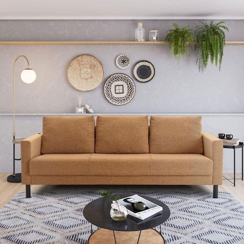 O Sofá Antúrio Cinza MadeiraMadeira é muito confortável, cabe 3 pessoas e é o que você precisa na sua sala de estar! Possuí carregador USB embutido Bivolt, muito útil para quando você quer carregar seu celular enquanto relaxa vendo TV! Vem desmontado, mas calma... É muito fácil de montar, tão fácil que só demora só 5 minutos, sem a necessidade de nenhuma ferramenta adicional.Possui as seguintes medidas (A x L x P): 68 x 200 x 80 cm, estrutura é eucalipto, espuma do assento é D-28 envolta com manta ecosoft e encosto é de fibra de poliéster. Depois nos conte como foi a experiência de compra e como ficou seu ambiente nos comentários! Acompanha Almofadas extras: Não Almofada do assento: Fixa Almofada do encosto: Removível Altura do assento até o chão: 40 cm Altura do Encosto: 47 cm Altura dos Pés: 15 cm Ambiente Principal: Sala de Estar Complexidade da Montagem: Baixa: pode ser montado por uma pessoa sozinha Cor: Âmbar Cor do Produto: Âmbar Densidade do Assento: D-28 Densidade do Encosto: D-28 Enchimento do Assento: Espuma Enchimento do Encosto: Fibra Siliconada Estilo de Braço: Braços Quadrados Firmeza do Assento: Macio Informações Complementares: Recomendado que faça a montagem do produto com duas pessoas devido ao tamanho das peças. Mesmo assim, é um produto de fácil montagem! Itens Inclusos: 1 Sofá e Manual de Montagem Linha ou Coleção: Antúrio Manual de Montagem e Instalação: https://product-hub-prd.madeiramadeira.com.br/866970/documents/67703a75-a5ef-4916-9b99-ea6999a37098747056sofantrio3lugares.pdf Material dos Pés: Madeira Montagem Flex: Não Necessita Montagem: Sim Origem do Produto: Nacional Peso: 38 kg Pet Friendly: Não Possui Percintas Elásticas: Sim Possui Pés: 04 Possui Rodízio: Não Recomendações de Uso, Manutenção e Limpeza: Fazer a limpeza com espanador de pó ou aspirador e movimentos delicados. Revestimento do Braço: 100% Polipropileno e Espuma D-33 Sistema de Montagem: Encaixe Suporta Até (kg): 300 kg Tecido Predominante: Linho Tipo de Encosto: Fixo Tipo de Mola: Não Possui Ean: 7909903400869