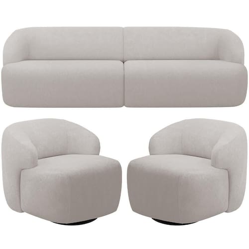 O Kit Sofá 3 Lugares Curvo Orgânico com 02 Poltronas Giratórias Para Sala Living 220cm Barolo - Lyam Decor, é a escolha perfeita para quem procura um design moderno para sua sala de estar ou living. Puro charme, esse sofá e poltrona orgânicos combinam perfeitamente com uma decoração moderna e elegante, já que a fluidez do design curvo harmoniza facilmente com qualquer ambiente. Já a qualidade alto-padrão fica por conta da tapeçaria feita com espuma de alta densidade, enquanto o revestimento em alta qualidade garante um toque macio e suave. Se você busca sofisticação e conforto, esse kit living é a opção ideal para completar o seu ambiente. Adicione ao seu carrinho e transforme o seu ambiente com esse estofado que será o centro das atenções!