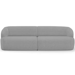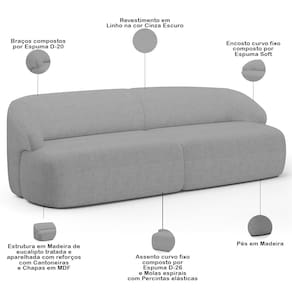 Sofá 3 Lugares Curvo Orgânico com 02 Poltronas Para Sala Living 220cm Barolo L06 Linho Cinza Escuro - Lyam Decor