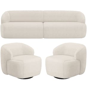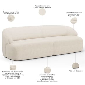 Sofá 3 Lugares Curvo Orgânico com 02 Poltronas Para Sala Living 220cm Barolo L06 Linho Mescla - Lyam Decor - Bege