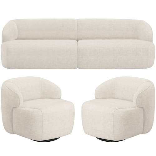 O Kit Sofá 3 Lugares Curvo Orgânico com 02 Poltronas Giratórias Para Sala Living 220cm Barolo - Lyam Decor, é a escolha perfeita para quem procura um design moderno para sua sala de estar ou living. Puro charme, esse sofá e poltrona orgânicos combinam perfeitamente com uma decoração moderna e elegante, já que a fluidez do design curvo harmoniza facilmente com qualquer ambiente. Já a qualidade alto-padrão fica por conta da tapeçaria feita com espuma de alta densidade, enquanto o revestimento em alta qualidade garante um toque macio e suave. Se você busca sofisticação e conforto, esse kit living é a opção ideal para completar o seu ambiente. Adicione ao seu carrinho e transforme o seu ambiente com esse estofado que será o centro das atenções!