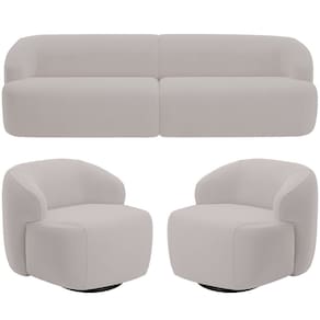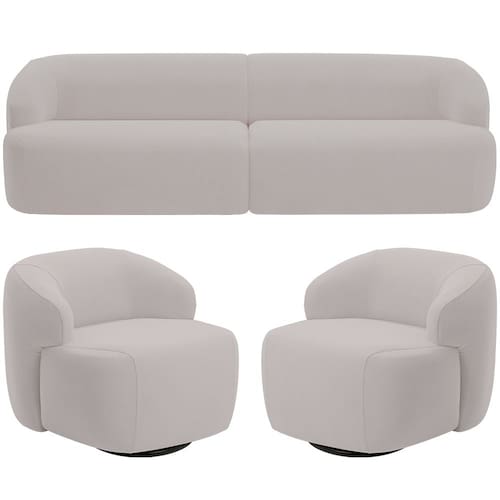 O Kit Sofá 3 Lugares Curvo Orgânico com 02 Poltronas Giratórias Para Sala Living 220cm Barolo - Lyam Decor, é a escolha perfeita para quem procura um design moderno para sua sala de estar ou living. Puro charme, esse sofá e poltrona orgânicos combinam perfeitamente com uma decoração moderna e elegante, já que a fluidez do design curvo harmoniza facilmente com qualquer ambiente. Já a qualidade alto-padrão fica por conta da tapeçaria feita com espuma de alta densidade, enquanto o revestimento em alta qualidade garante um toque macio e suave. Se você busca sofisticação e conforto, esse kit living é a opção ideal para completar o seu ambiente. Adicione ao seu carrinho e transforme o seu ambiente com esse estofado que será o centro das atenções!