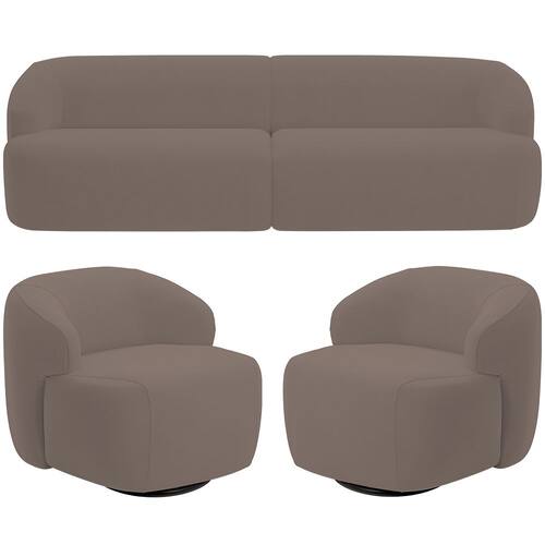 O Kit Sofá 3 Lugares Curvo Orgânico com 02 Poltronas Giratórias Para Sala Living 250cm Barolo - Lyam Decor, é a escolha perfeita para quem procura um design moderno para sua sala de estar ou living. Puro charme, esse sofá e poltrona orgânicos combinam perfeitamente com uma decoração moderna e elegante, já que a fluidez do design curvo harmoniza facilmente com qualquer ambiente. Já a qualidade alto-padrão fica por conta da tapeçaria feita com espuma de alta densidade, enquanto o revestimento em alta qualidade garante um toque macio e suave. Se você busca sofisticação e conforto, esse kit living é a opção ideal para completar o seu ambiente. Adicione ao seu carrinho e transforme o seu ambiente com esse estofado que será o centro das atenções!