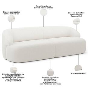 Altura: 78 cm | Color: Branco | ColorFamily: Branco | ColorSimple: Branco | ColorSupplier: Branco | Cor: Branco | Cor dos pés: -1 | Densidade da espuma do assento: D-26 | Desenho do tecido: Liso | Estilo: Moderno | Fabricante: Lyam Decor | Formato do sofá: Linear | Largura: 220 cm | Linha: Sala de Estar | Material: Estrutura em madeira de eucalipto tratada e aparelhada com reforços, cantoneiras e chapas em MDF. | Material de enchimento do encosto: Encosto curvo fixo composto por espuma soft. | Material do estofamento: Bouclê | MaterialFamily: Madeira ,Tecido | Mecanismo de abertura do produto: -1 | Model: Barolo | Orientação do Sofá: -1 | OriginCountry: | OriginState: PR | Peso: 54 kg | Peso máximo suportado: 120 kg | ProductContents: 01 Sofá | ProductHeight: 78 cm | ProductInstructions: Produto para uso em ambiente interno, nao devendo ficar exposto ao sol, calor e umidade excessivos. | ProductLength: 90 cm | ProductWarranty: 90 dias após o do produto | ProductWeight: 54 kg | ProductWidth: 220 cm | Profundidade: 90 cm | Quantidade de Caixas de embalagem: 1 | Requer montagem: Não | SizeDescription: Altura: 78 cm x Largura: 220 cm x Profundidade: 90 cm | SupplierSimpleName: Sofá 3 Lugares Curvo Orgânico Para Sala Living 220cm Barolo L06 Bouclê Branco - Lyam Decor | Tipo de produto: Sofá | Unidades por kit: 1