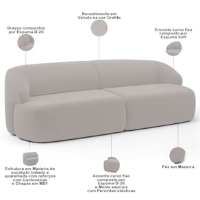 Sofá 3 Lugares Curvo Orgânico Para Sala Living 250cm Barolo L06 Veludo Grafite - Lyam Decor - Cinza