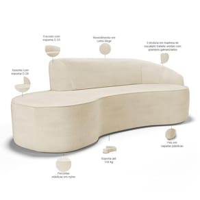 O Sofá Firenze é uma excelente opção para dar um toque de elegância e sofisticação à sua sala de estar, living, hall de entrada, eventos ou espaços comerciais. Seu formato curvo em meia lua cria um visual encantador juntamente com o encosto estofado, proporcionando um toque de originalidade e modernidade ao ambiente. Além disso, sua estrutura robusta e durável garante conforto e resistência, garantindo que o sofá possa ser desfrutado por muito tempo. O Sofá Firenze é o elemento que falta para transformar o seu espaço em um lugar mais charmoso e aconchegante! Seja qual for o ambiente em que você deseja adicionar um toque de estilo e conforto, o sofá com design curvo é a opção certa. Sua beleza única e funcionalidade prática combinam perfeitamente, tornando-o um investimento valioso para qualquer espaço.
