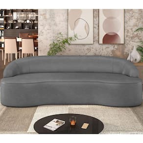 Sofá 3 Lugares Curvo Sala de Estar Living Lótus D02 Corino Cinza 180 cm C-03 - Lyam - Cinza Claro