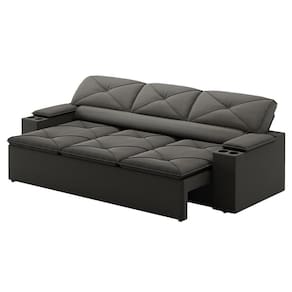 Sofá 3 lugares DDS Next Pop Revestido em Tecido Velosuede Assento Retrátil e Encosto Reclinável com Porta-Copos - 205cm de Largura - Cinza