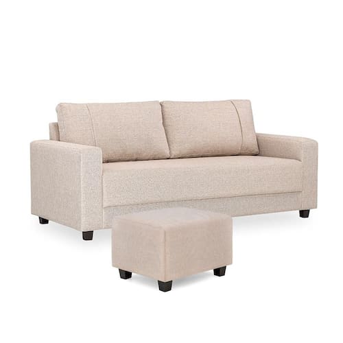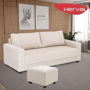 Sofá 3 Lugares e Puff Herval Clean Linho Bege, 200 cm