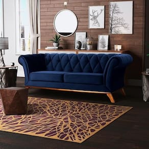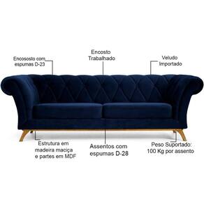 Sofá 3 Lugares Império 230 Cm Veludo Azul Marinho C-287