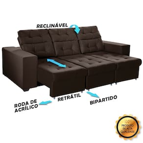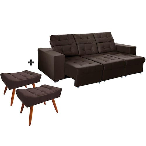 Sofá 3 Lugares Itália Plus 2 Metros, Retrátil Reclinável com 2 Puffs pés Palito. Sabe aquela sensação de felicidade e satisfação que você sente quando faz uma boa escolha?! Pois bem, essa é a sensação de comprar um sofá Itália Plus que possui um design moderno, acompanha 2 pufes elegantes que complementa o seu ambiente deixando ainda mais lindo e aconchegante. Ele possui encosto reclinável em cinco posições, proporcionando-lhe mais conforto na hora do descanso. E não para por aí: seu assento retrátil conta com espuma D28, transformando seu sofá em uma verdadeira cama para assistir seu filme preferido. Itens Inclusos 1 Sofá; 2 Pufes. Quantidade de Lugares: 3 Características: - Encosto Reclinável com 5 posições, almofadas fixas compostas de 100% fibra para maior conforto. - Assentos retráteis com percintas pneumáticas com feltro para proteger do atrito. - Braços com 25cm de largura e com espuma D28 e costuras duplas. - Fixação: Grampos galvanizados antiferrugem. - Estrutura de Madeira maciça 100% eucalipto de reflorestamento, produto ecologicamente correto. FABRICANTE: WS ESTOFADOS Medidas do sofá: Altura: 100cm Profundidade fechado: 110cm Profundidade aberto: 160cm Largura: 200cm Pé de tabaco:0,5 cm Rodas de silicone *Suporte até 120kg por assento *Módulos: 2 * Montagem Simples; *3 Meses de garantia. Informações importantes: – Os objetos que ambientam as fotos não acompanham o produto. – Tonalidade de cores pode sofrer variação conforme monitor visualizador. – Os tecidos podem sofrer alterações de tonalidades dependendo do lote de produção. – Verifique as dimensões do produto e certifique-se que o percurso que ele fará até o local de uso permite sua passagem. Quaisquer despesas ou danos no transporte até o local de uso ficam a cargo do cliente. “Em situação de escadaria ou Elevadores - Entregadores efetua apenas na portaria”. . . . . . Tag Você também pode Buscar por – Sofá, sofá reclinável, sofá retrátil, sofá grande, sofá luxo, sofá confortável, sofá para casa, sofá 2 Lugares, Sofá 4 lugares, sofá com Pillow Top, sofá para apartamento, sofá clean, sofá designer, sofá lugares, sofá Grande, sofá para filme.