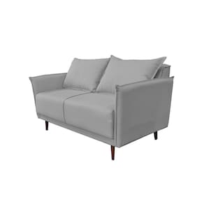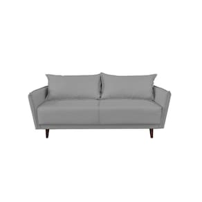 Sofá 3 Lugares Linho Cinza Pietro Base em Madeira Maciça