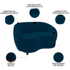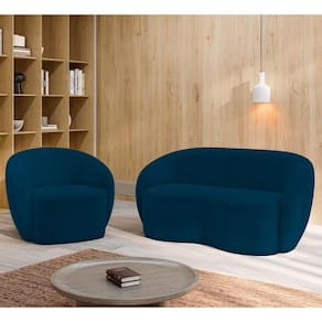 O Sofá 3 Lugares Living 180cm e 1 Poltrona Giratória Garbin Z08 Veludo Azul Marinho, da Mpozenato tem um Design Orgânico, combinando estética e funcionalidade com uma consciência ecológica.
