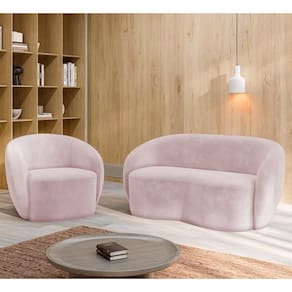 O Sofá 3 Lugares Living 180cm e 1 Poltrona Giratória Garbin Z08 Veludo Rosê, da Mpozenato tem um Design Orgânico, combinando estética e funcionalidade com uma consciência ecológica.