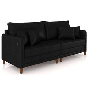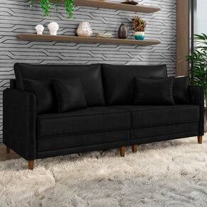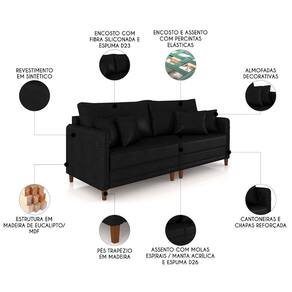Sofá 3 Lugares Living 192cm Pé Madeira Zoe Sintético Preto Z08 - Mpozenato