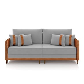 O Sofá 3 Lugares Living Valença é a escolha perfeita para quem busca um equilíbrio entre conforto e elegância em um espaço compacto. Com medidas de 212 cm, este sofá se destaca pelo design sofisticado e pela qualidade de seus materiais. O sofá é revestido em tecido sintético PU na cor Nozes, com um acabamento em Veludo Cinza que proporciona um toque de sofisticação e aconchego. O sofá é fabricado com madeira de reflorestamento tratada, especificamente eucalipto. Já os pés são de madeira na cor castanho, com acabamento elegante que complementa o visual geral do móvel. O sofá possui assento e encosto fixos, garantindo uma estrutura sólida e sem movimento. A espuma utilizada é a D-28, conhecida por sua durabilidade e conforto. O assento é fixo, que garante um suporte firme e duradouro. Ele é equipado com molas espirais e percintas elásticas, além de uma manta acrílica que oferece um conforto extra. Este assento é projetado para suportar até 150 kg, garantindo robustez e estabilidade. O encosto é fixo e conta com percintas elásticas que sustentam almofadas soltas preenchidas com 100% fibra siliconada, proporcionando um apoio macio e confortável para as costas. Além do mais, as almofadas do encosto do sofá são adornadas com uma fita em sintético PU que segue a mesma tonalidade do revestimento, na cor Nozes. Este detalhe não apenas realça o design do sofá, mas também oferece uma finalização elegante e refinada. Os braços do sofá são preenchidos com espuma D-23, o que proporciona um suporte confortável e equilibrado. A estrutura dos braços complementa o design do sofá, oferecendo uma superfície acolhedora para descansar os braços. Para garantir a durabilidade e resistência, os pontos de tensão do sofá são fixados com grampos galvanizados antiferrugem ou aparafs, garantindo que o móvel mantenha sua integridade ao longo do tempo. A combinação desses materiais assegura um suporte ergonômico, ideal para relaxar após um longo dia. Invista no conforto e na sofisticação que você merece, o Sofá Valença está esperando por você!